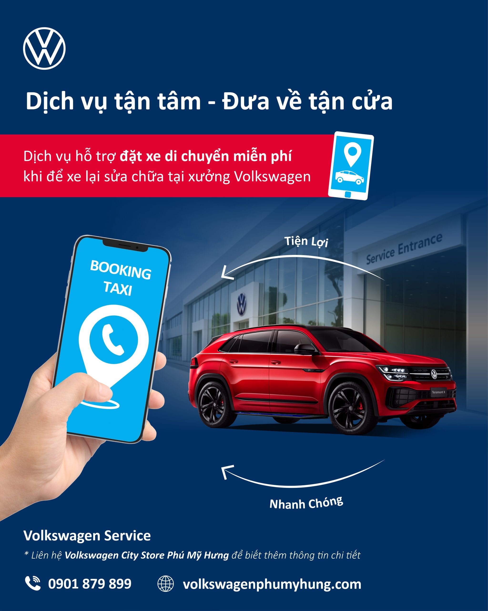 Ngoài ra, khi Quý khách mang xe đến sửa chữa tại Xưởng Dịch vụ Volkswagen Tân Thuận – VW City Store Phú Mỹ Hưng, chúng tôi hỗ trợ ĐẶT XE DI CHUYỂN MIỄN PHÍ (Taxi/Grab) để Quý Khách hàng có thể dễ dàng trở về nhà hoặc tiếp tục công việc.