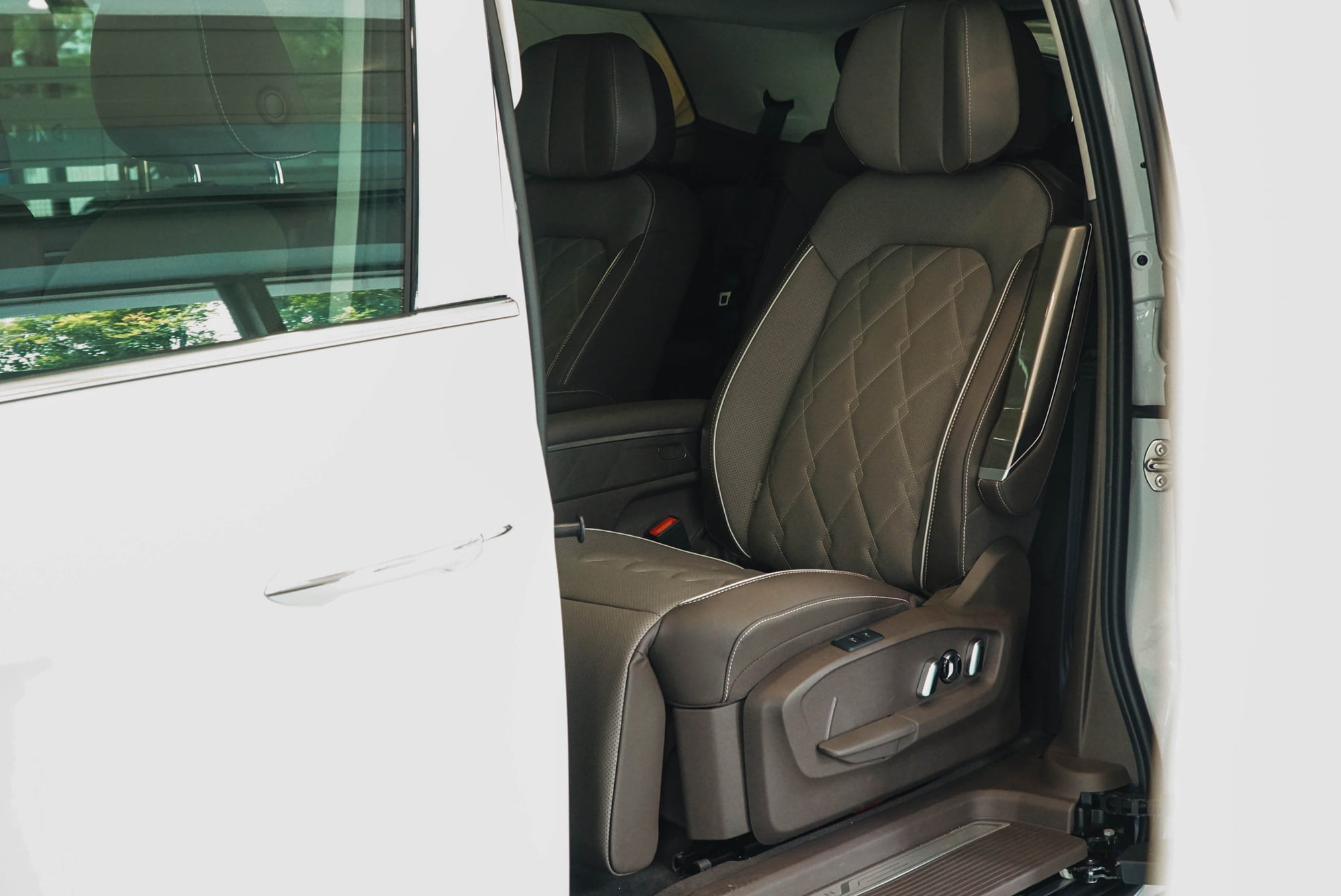 Giữa hàng ghế thứ hai có lối đi thuận tiện dành cho hành khách ở hàng ghế thứ ba, giúp ông chủ và khách VIP không cần phải di chuyển khi có người cần ra vào. Không gian hàng ghế thứ ba cũng khá rộng rãi, nhưng có thể hạn chế cho những chuyến đi dài do không gian để chân có phần chật chội, điều này cũng là đặc điểm chung của hầu hết các mẫu MPV trên thị trường.